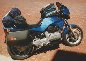Tank Bag w/cover - Yes, it may cover up part of your dashboard and move around in strong crosswinds, and your handlebars may make contact with it near the stops, but it's still worth it. That empty space on top of your gas tank just sits there waiting to help. They're generally not waterproof, hence the rain cover, and the rain cover wants to blow off going down the road. Try to find a bag that perfectly fits your tank and needs. I vote for tall and narrow with 3-4 strap-down points. You use it to store mostly soft things and frequently used small items. My favorite brand and model is the vertically adjustable Eclipse Sportpack Tankbag--that's what you want. Very easy to partly detach from the front and lift up and back onto the seat when gassing up. Mapcase on top makes for iconic touring bike.